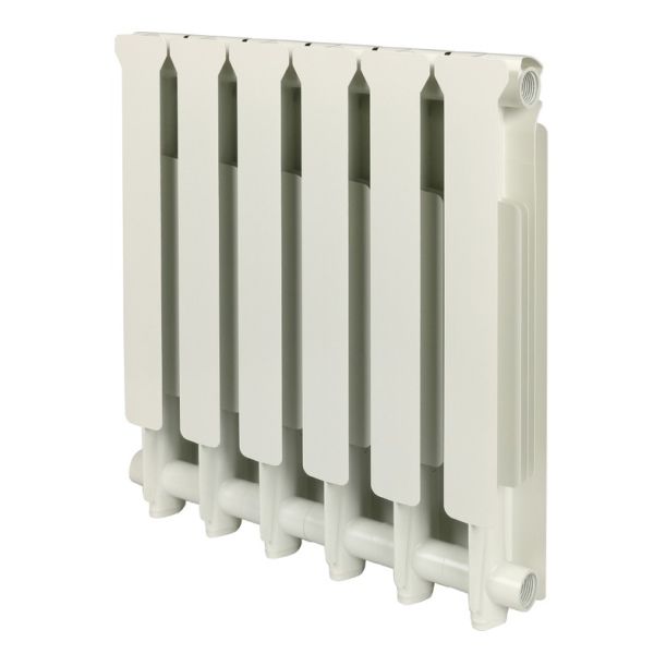В отверстиях коллекторов выполняется трубная резьба размером 1 (с одной стороны правая, а с другой – левая). Резьба служит для соединения секций между собой в радиаторы различной длины с помощью стальных резьбовых ниппелей. Геометрия ниппельных соединений, а также параметры прокладок гарантируют надежную герметичность собранного радиатора. Наружная поверхность секции радиатора окрашена порошковой эмалью белого цвета (RAL 9010).