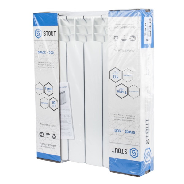 Биметаллический радиатор STOUT Space 500 9 секций нижнее подключение данные приборы имеют стальной вертикальный коллектор, тем самым отличаются от алюминиевых радиаторов. Внутренний диаметр стального коллектора составляет 12, 8 мм. Радиаторы покрываются белой эмалью (цвет RAL 9016). Биметаллические радиаторы STOUT Space предназначаются для систем отопления высокого давления, а также в системах частного домостроения. В качестве теплоносителя необходимо использовать только специально подготовленную воду, а именно в соответствии с требованиями, приведёнными в "Правилах технической эксплуатации электрических сетей и станций РФ" РД 32,20,501. Биметаллические радиаторы STOUT характеризуются широкой номенклатурой, обладают современным дизайном, а также соответствуют требованиям ГОСТ 31311-2005 на приборы отопления. Рабочее давление до 20 атмосфер. Испытательное давление 30 атмосфер. Максимальная температура теплоносителя 135 С.