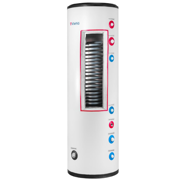 Бойлеры косвенного нагрева Viena предназначены для производства и накопления горячей воды хозяйственно - бытового назначения. Нагрев осуществляется путем передачи тепла от внешнего источника (котел, солнечные батареи, магистраль центрального теплоснабжения, тепловые насосы и пр.) воде, находящейся в баке, посредством трубчатого теплообменника (змеевика).