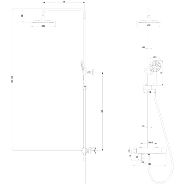 • Аксессуары в комплекте (верхняя поворотная душевая лейка «Тропический дождь» Ø226 мм, 3-функциональная лейка Ø110x244 мм, регулируемое по высоте крепление для лейки, душевой шланг 1,5 м Turn-Free)