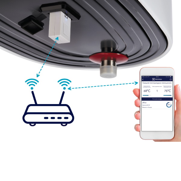 Для управления водонагревателем по сети Wi-Fi используется съемный модуль Smart Wi-Fi (доп.опция) и специальное мобильное приложение Electrolux Home Comfort: climatic appliances. Приложение доступно для скачивания в App Store и Google Play для мобильных устройств с системами Android 4.1 или ios 6.0 и более поздних версий.