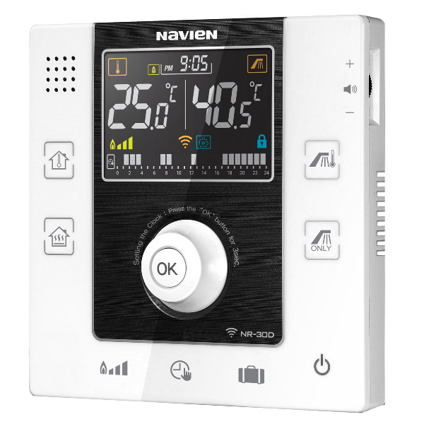 Управление микроклиматом через термостат обеспечивает снижение расходов на газ на 10-15%. Дополнительную экономию обеспечит встроенная погодозависимая автоматика. Она ориентируется на уличную температуру воздуха, управляя горелкой котла и создавая оптимальные условия для проживания людей. Но и это ещё не всё – в котле Navien SMART TOK 24K предусмотрено дистанционное управление через смартфон. Это позволяет управлять домашним климатом из любой точки мира, подключившись к интернету. Данный функционал обеспечивает дополнительную экономию на потреблении газа.
