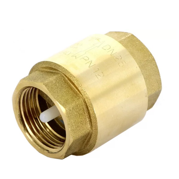 Клапан обратный STOUT с нейлоновым седлом 1" пружинный муфтовый с пластиковым или металлическим седлом. Обратные клапаны  предназначаются для использования в системах отопления, водоснабжения, кондиционирования, а также в системах сжатого воздуха. Клапан обратный STOUT с нейлоновым седлом 1" управляют проходящим через них потоком только в одном направлении, что обозначено стрелкой на корпусе. Клапаны состоят из пружины, собственно клапана, латунного корпуса и концевика с резьбой. Особенности клапана — Универсальная установка: горизонтально, вертикально.