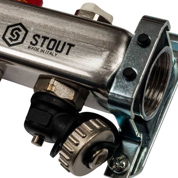 Коллектор STOUT нержавейка без расходомеров слив/вып. воздуха 8 выходов