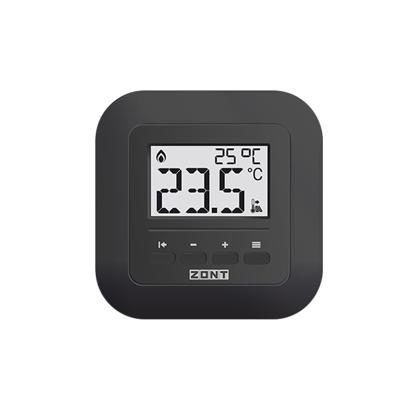 Комнатный термостат ZONT МЛ-332.black (868) предназначен для контроля температуры воздуха в отдельной зоне обогрева с отображением текущего и целевого значения температуры на дисплее. Ввод целевого значения температуры осуществляется вручную через термостат или дистанционно из сервиса ZONT. Для измерения температуры используется встроенный датчик воздуха NTC-10.