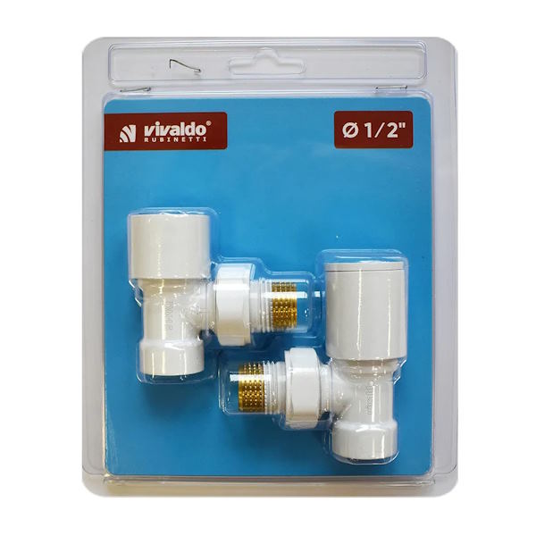 Комплект подключения радиатора угловой 1/2" белый в блистере VIVALDO