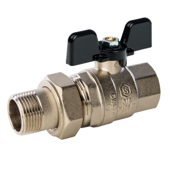 Кран шаровой полнопроходной STOUT с "американкой" ВР/НР бабочка 3/4"
