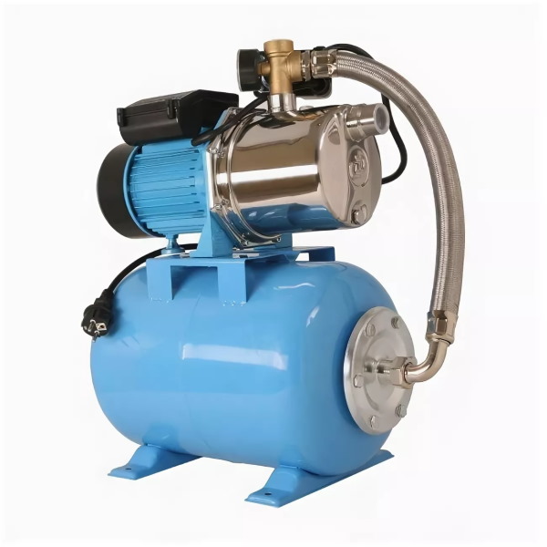 Насосная станция Джилекс ДЖАМБО 70/50 Н-50 состоит из насоса, горизонтального гидроаккумулятора, реле давления, манометра, соединительной арматуры и электрокабеля с вилкой.