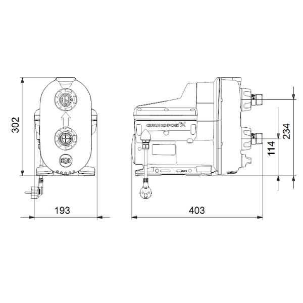 Насосная станция Grundfos SCALA 2 3-45 имеет встроенный датчик, который постоянно измеряет давление на выходе из насоса. Если давление падает ниже заданного уровня, насос немедленно повышает производительность, чтобы компенсировать падение давления.