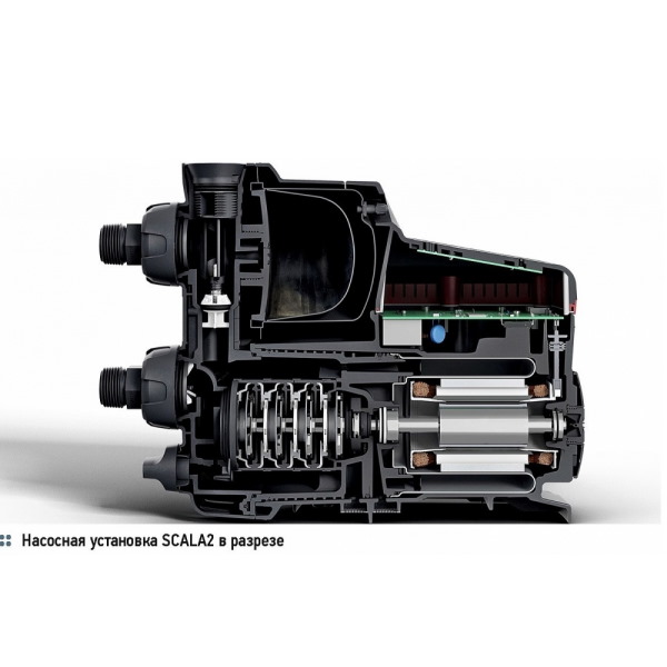 • Низкий уровень шума: В штатных условиях работы уровень производимого SCALA2 шума составляет всего 47 дБ(А), что делает её одной из самых бесшумных установок для водоснабжения в своём классе.