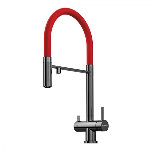 Смеситель для кухни Omoikiri Kanto PVD-GM вороненая сталь/красный