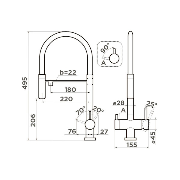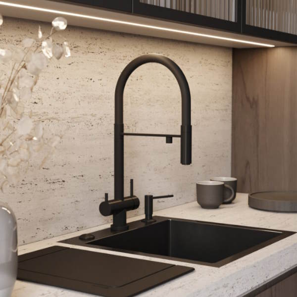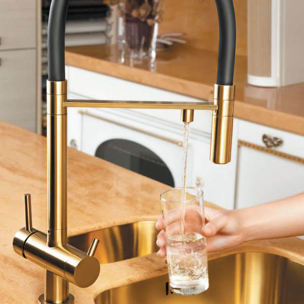 Смеситель Omoikiri Kanto Pvd Lg сочетает в себе легкий воздушный дизайн, простоту и удобство в использовании, встроенную систему PURE LIFE® для фильтрации. Важно: очищенный водный поток не смешивается с основным. Цвета изделия – золото и черный матовый — классика сочетаний в дизайне.