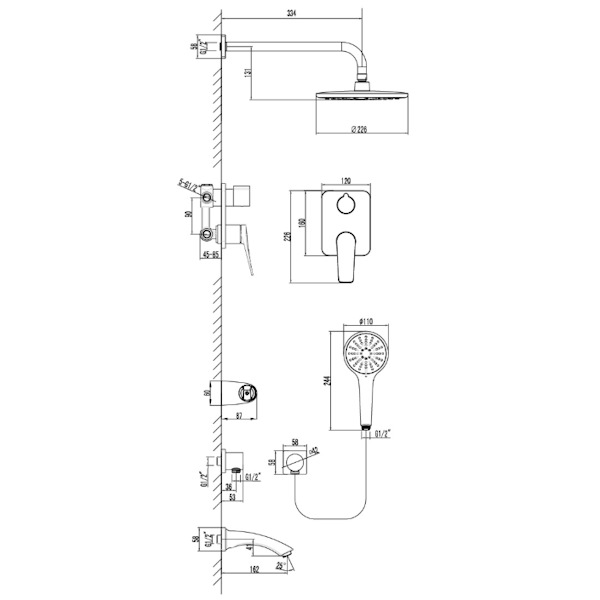 • Верхняя поворотная душевая лейка «Тропический дождь» Ø226 мм