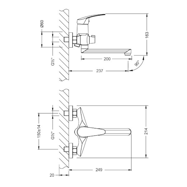 • Аксессуары в комплекте: шланг 1,5 м, 1-функциональная лейка Ø100х225 мм, настенное поворотное крепление