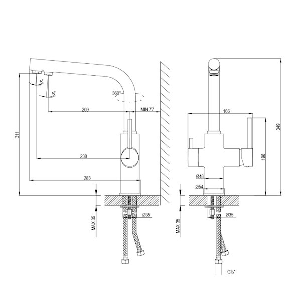 • Для крана с питьевой водой: кран-букса с керамическими пластинами (угол поворота – 90°)