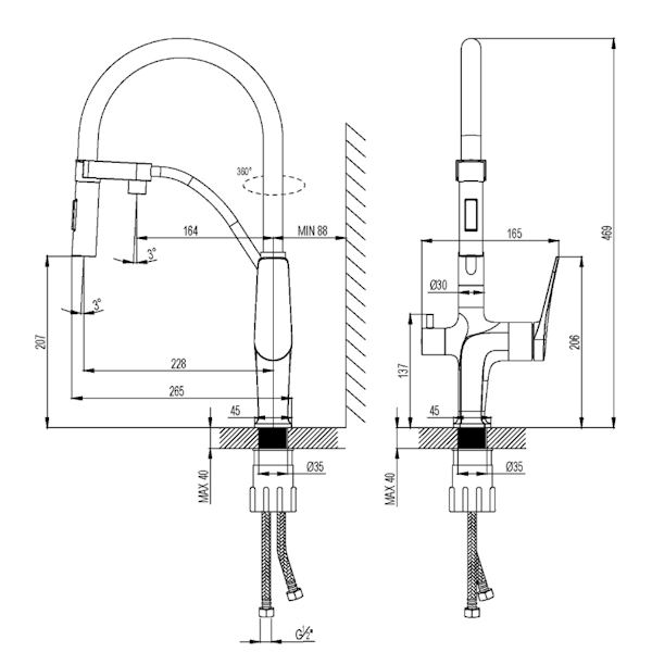 • Для крана с питьевой водой: кран-букса с керамическими пластинами (угол поворота - 90⁰)