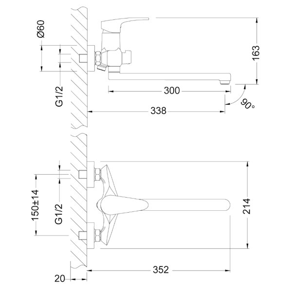 • Аксессуары в комплекте: шланг 1,5 м, 1-функциональная лейка Ø100х225 мм, настенное поворотное крепление