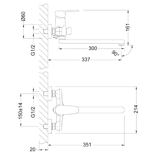• Аксессуары в комплекте: шланг 1,5 м, 1-функциональная лейка Ø100х225 мм, настенное поворотное крепление