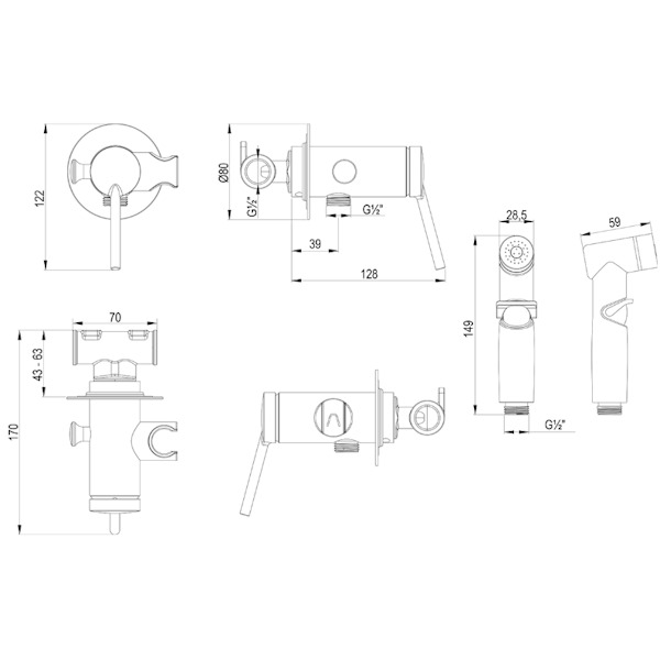 • Аксессуары в комплекте: лейка гигиенического душа с регулятором напора воды, душевой шланг 1,2 м