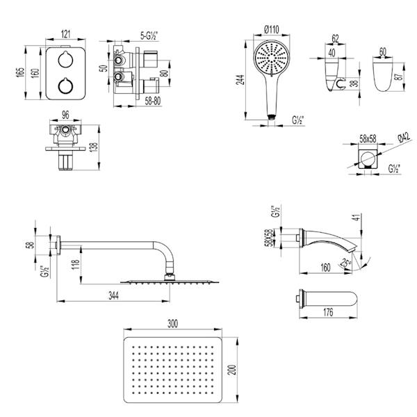 • Верхняя поворотная душевая лейка «Тропический дождь» 200х300 мм
