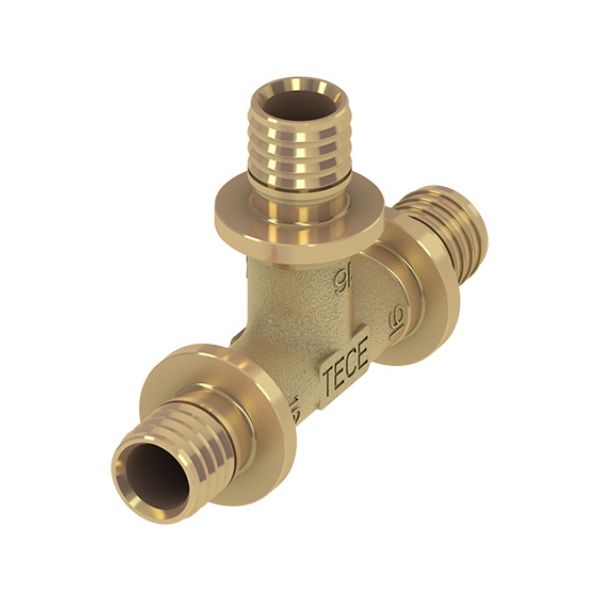 TECE Тройник 90* редукционный 25 х 16 х 20 латунь фитинги имеют сертификат и разрешены для трубопроводных сетей питьевой воды, отопления, газоснабжения и сжатого воздуха.Один из лидеров рынка отопления TECE с гордостью представляет свою систему - TECEflex.