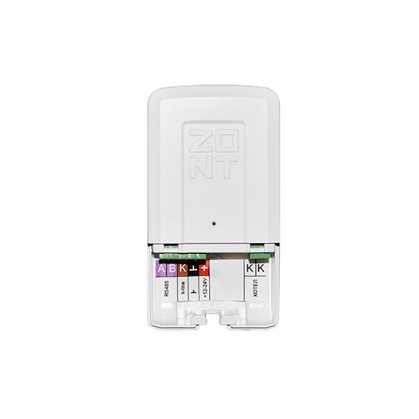Универсальный адаптер автоматически определяет тип цифровой шины котла и обеспечивает обмен данными между его электронной платой и автоматикой ZONT: